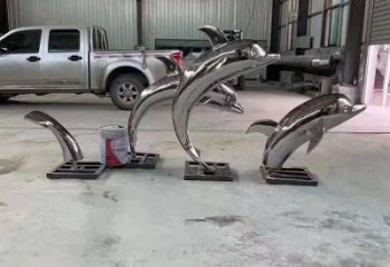 鏡面不銹鋼海豚噴泉雕塑水景