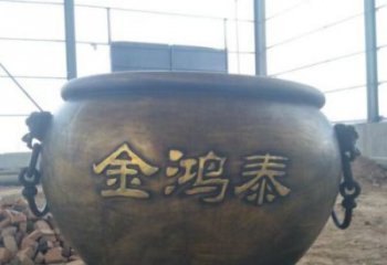 寺院戶外擺放黃銅鑄造招財(cái)聚寶盆大型圓水缸