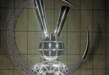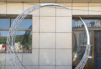 不銹鋼拋光月亮假山仙鶴景觀雕塑擺件