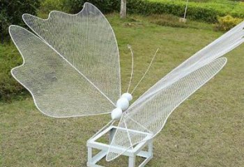 “從遠處看,雕塑被視為一種大型形式。然而,當仔細觀察時,可以看到許多小塊拼湊在一起形成一個單元。雕塑完全由噴砂不銹鋼制成,玻璃鋼藝術蝴蝶雕塑有黃色粉末涂層。